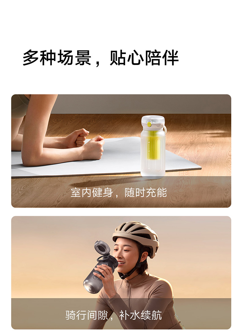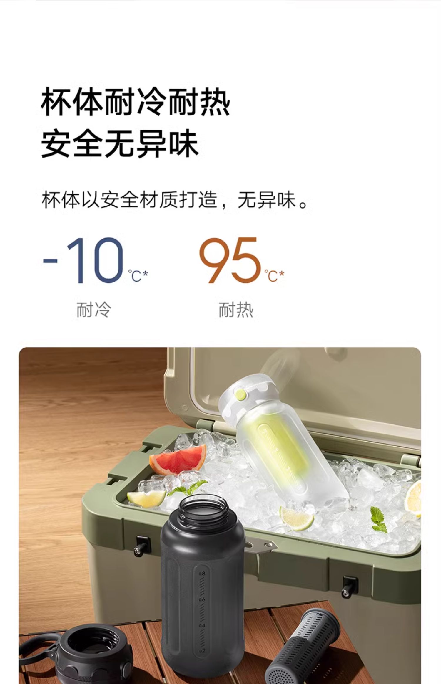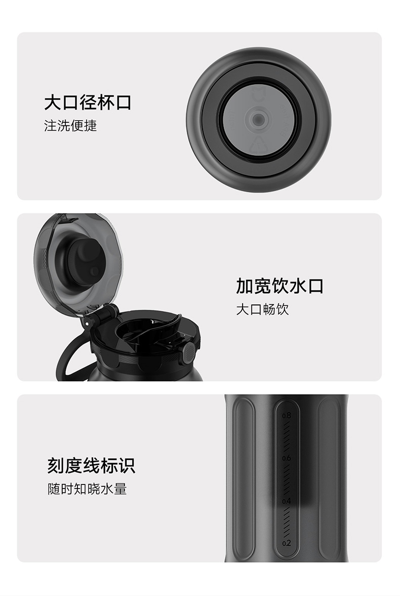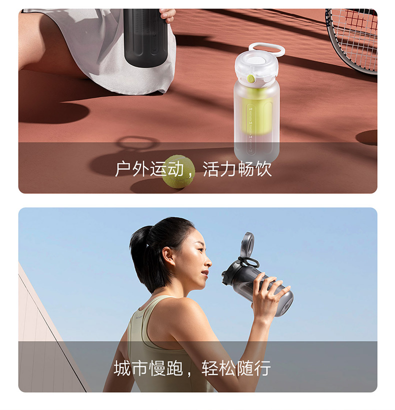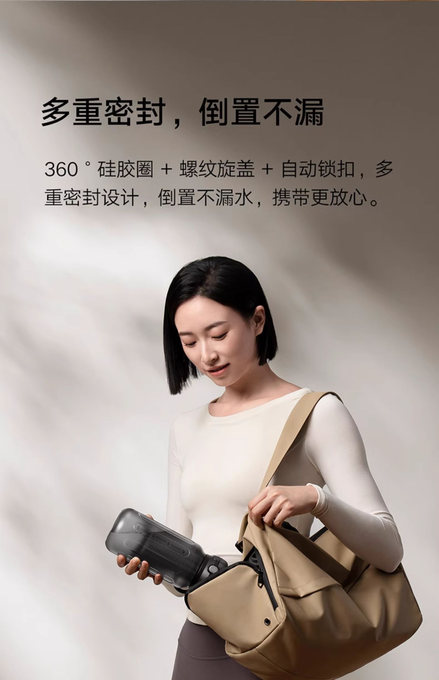 1L容量酣补水;关盖落锁安心随行;独立茶仓;密封不漏水;一键单手弹盖