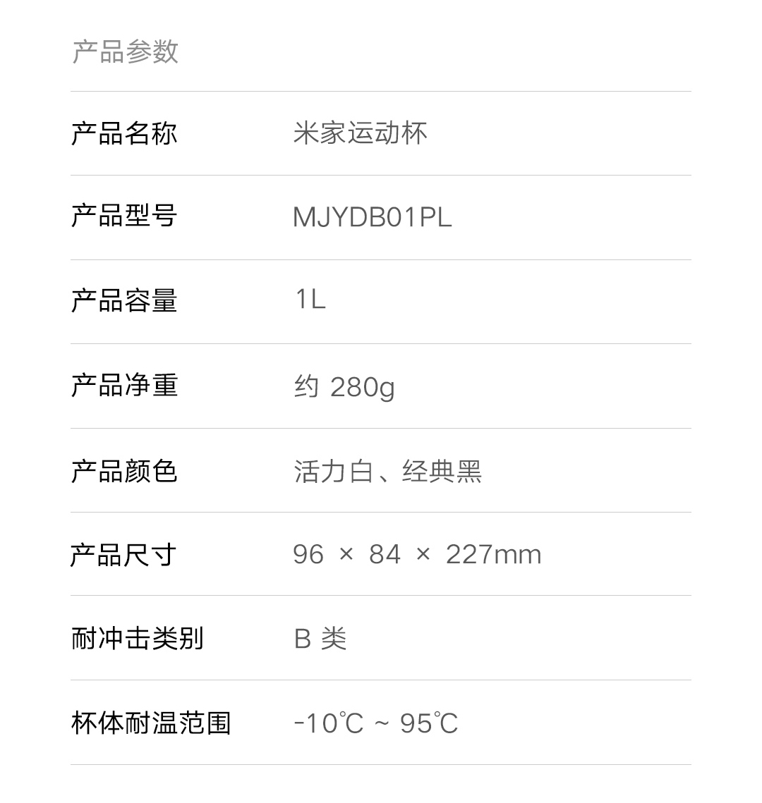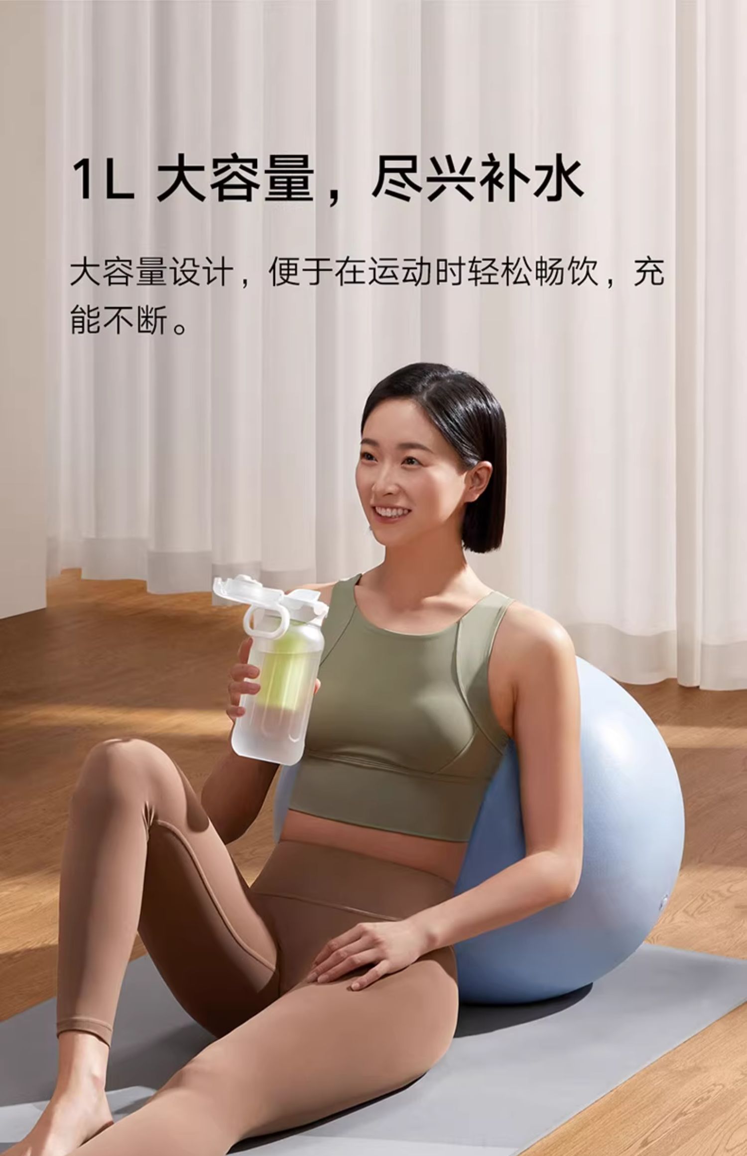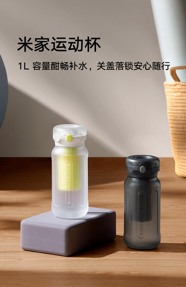 小米米家运动杯 1L 黑色/白色 水杯大容量运动水壶夏季户外便携男女大号健身水杯