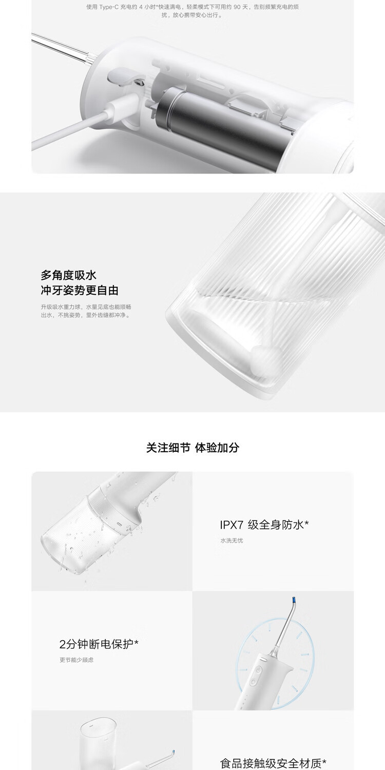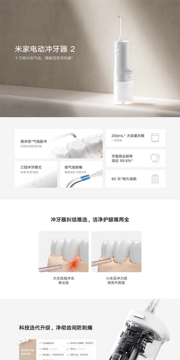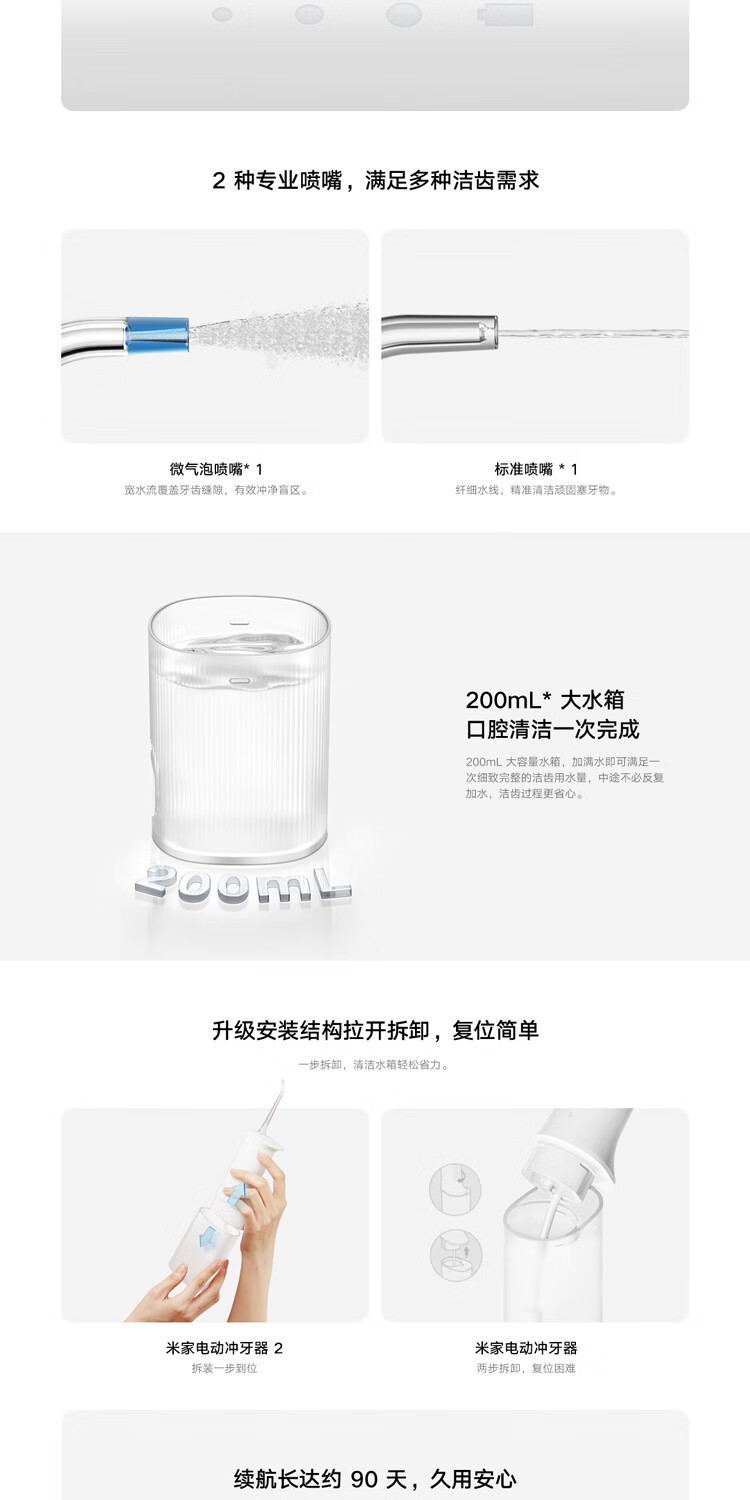 米家电动冲牙器2 洗牙器美牙仪 牙齿清洁器汽泡喷嘴冲牙器2