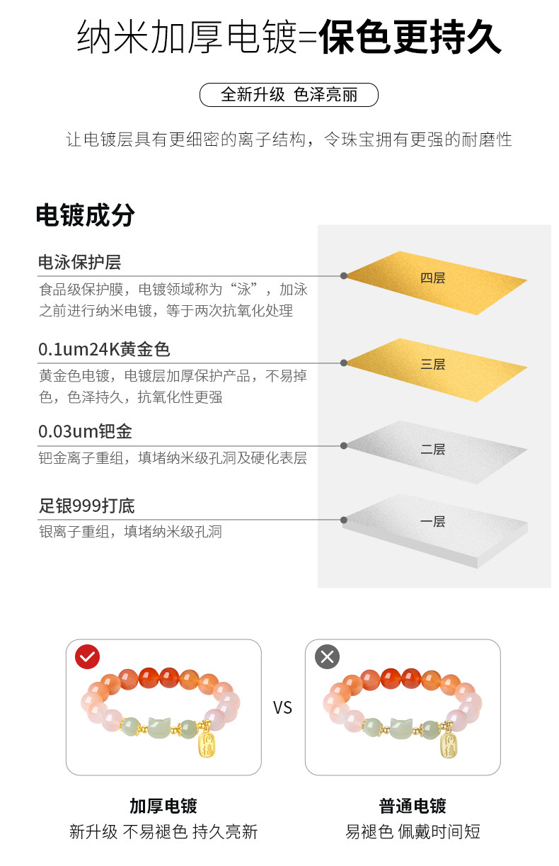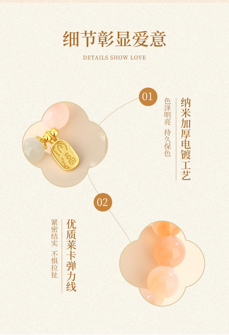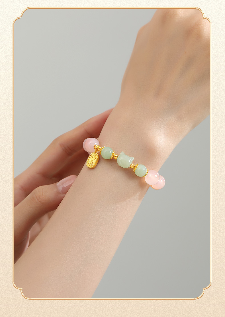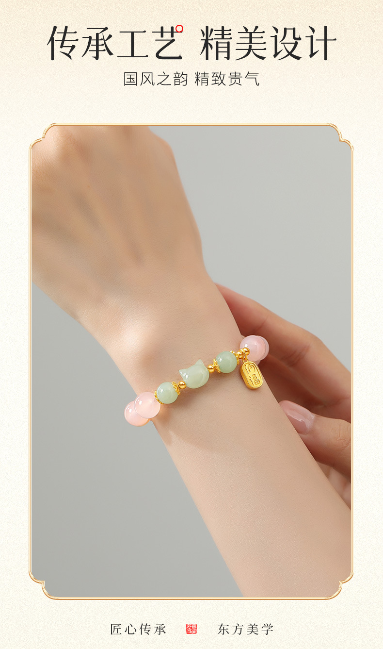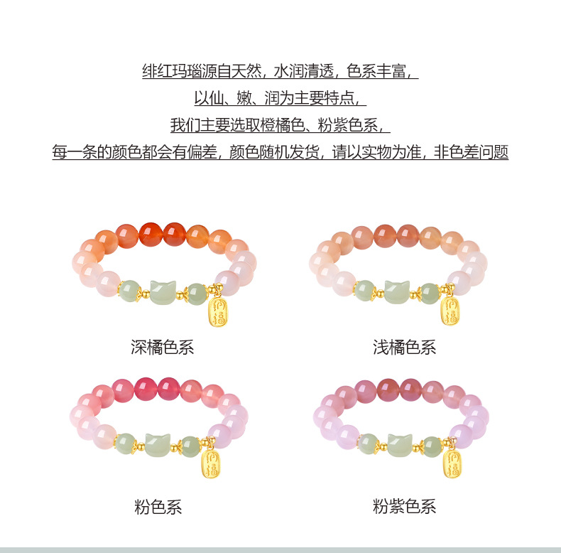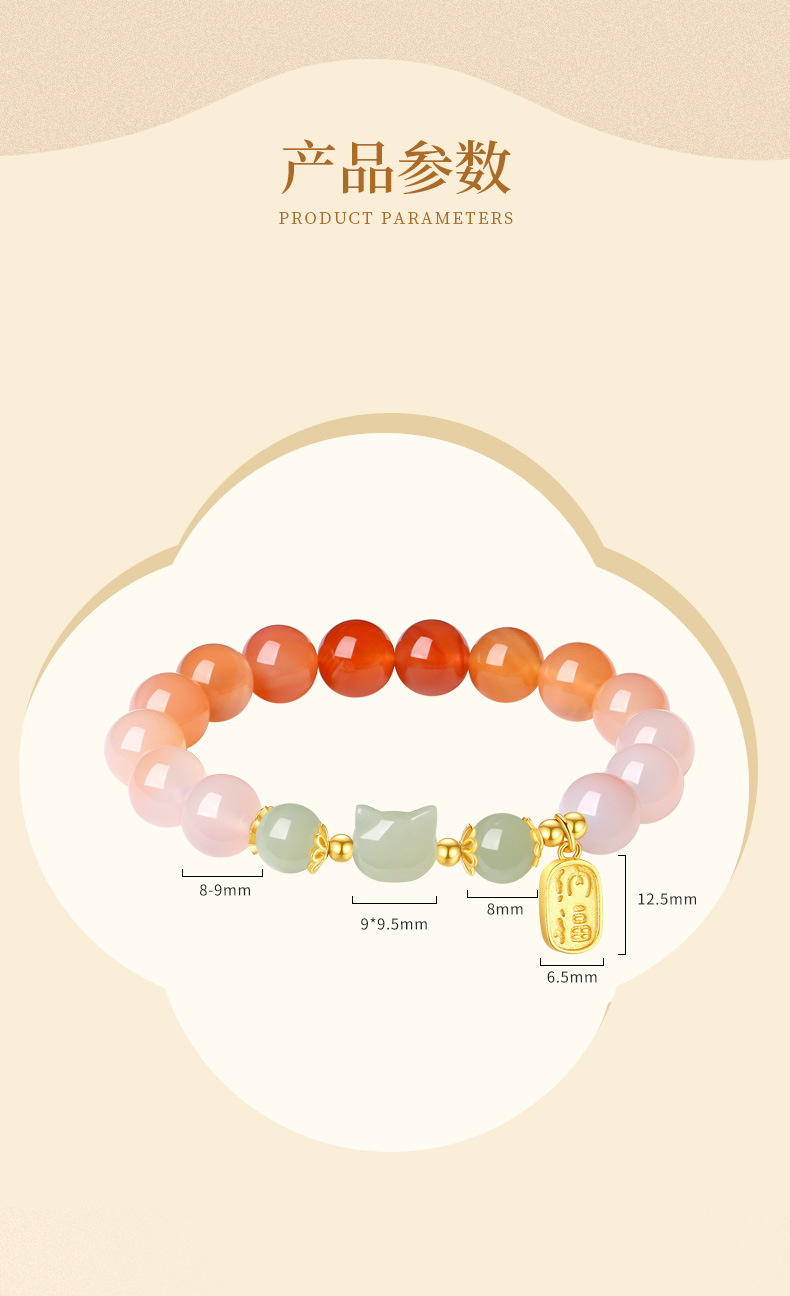 灵趣萌动招财猫,搭配渐变绯红玛瑙,满满少女心点缀手腕柔美;象征平安如意、财源滚滚、好运连连、元气满满、事业发达