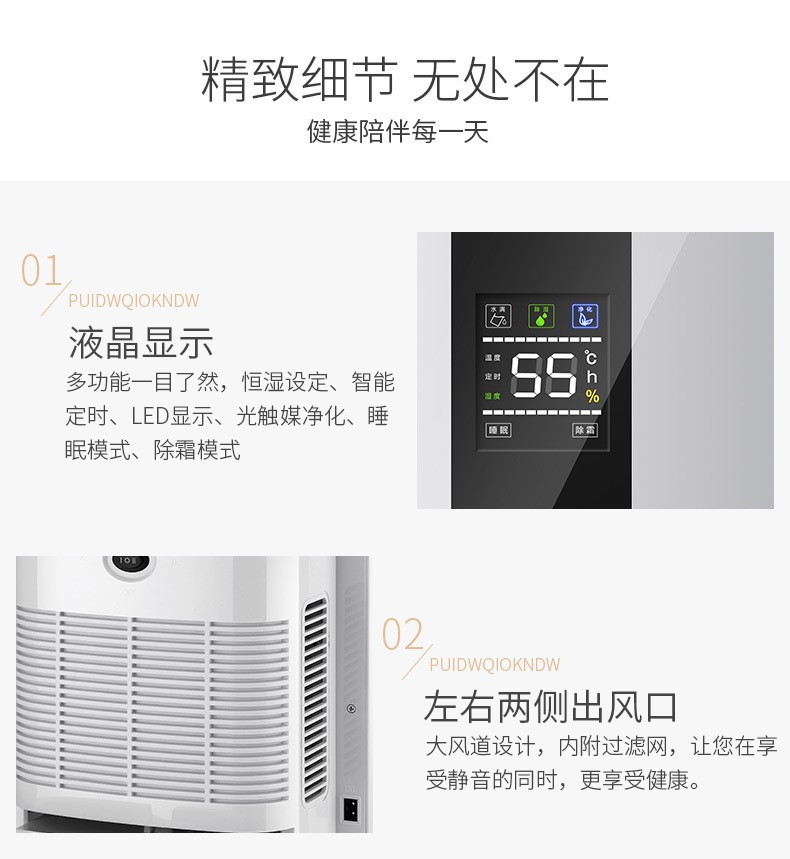 光触煤净化清新空气 恒湿设定 双排水系统 低温除霜 一键除湿
