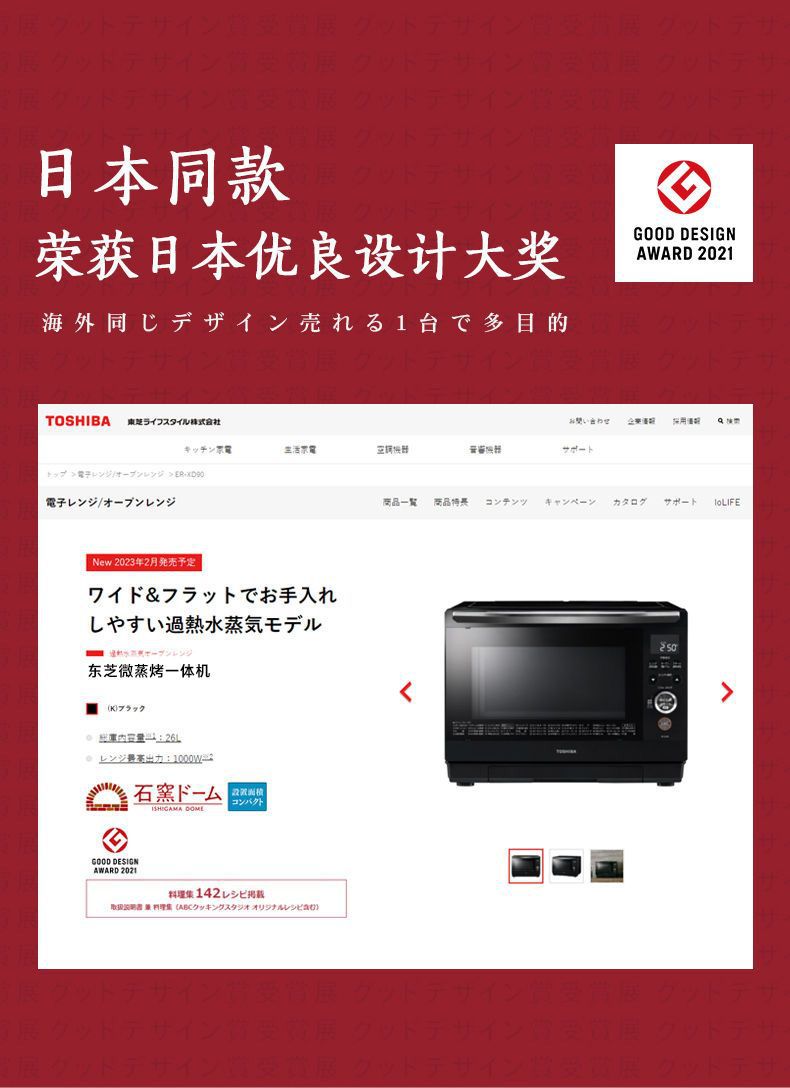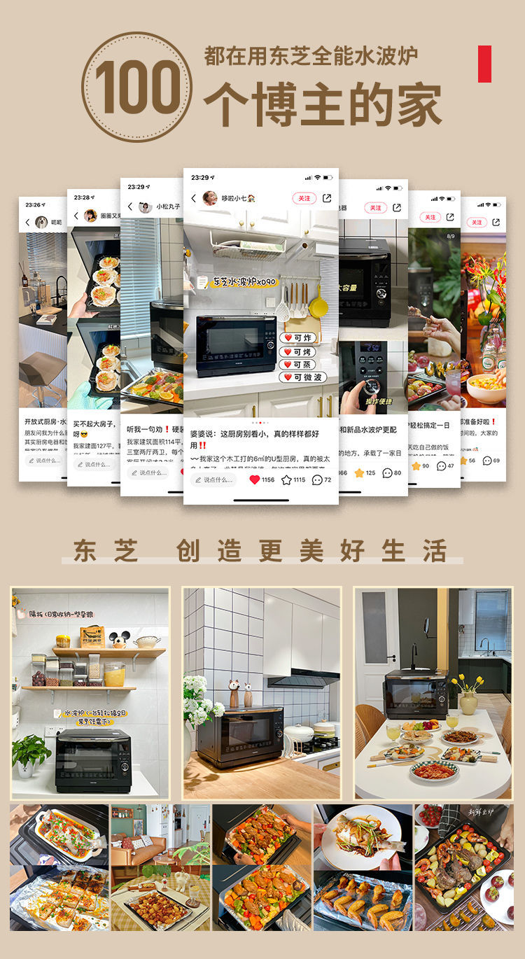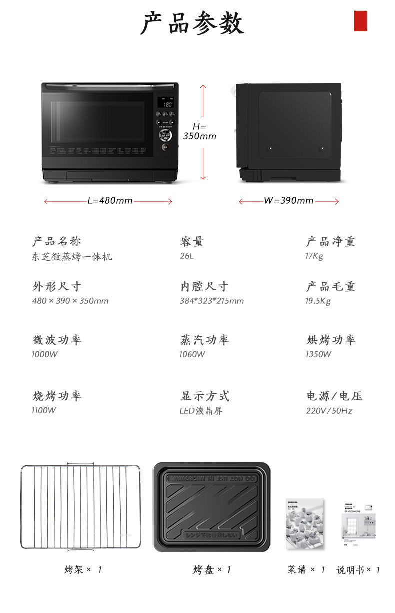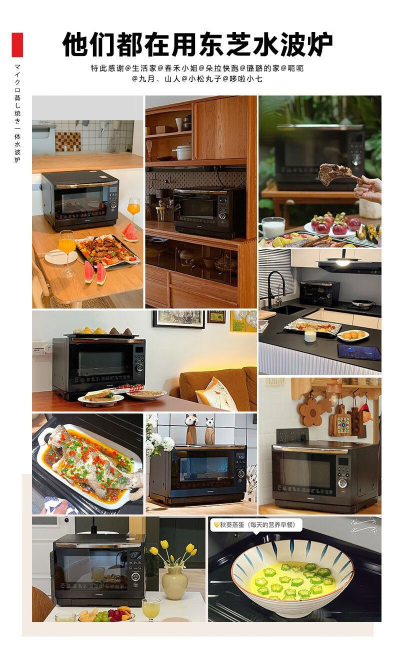 东芝水波炉 微波炉蒸烤空气炸锅三合一微蒸烤一体机26L