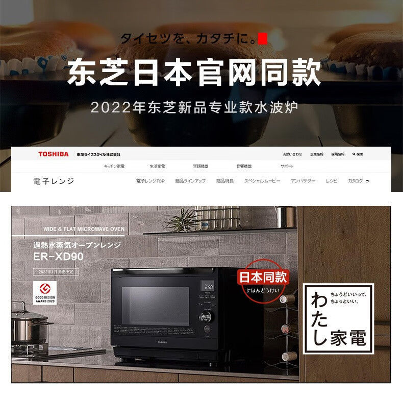 东芝水波炉 微波炉蒸烤空气炸锅三合一微蒸烤一体机26L-Digicat 猫电澳洲
