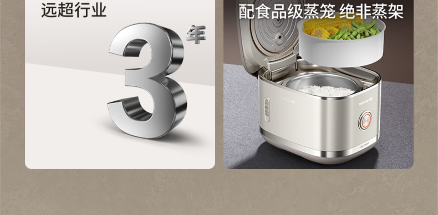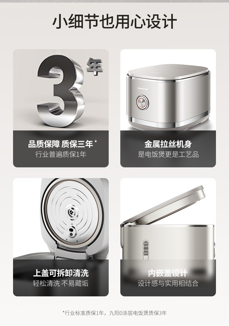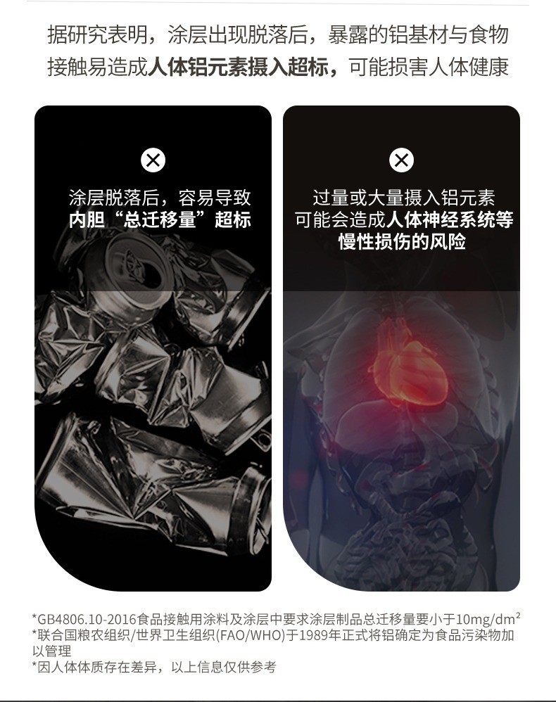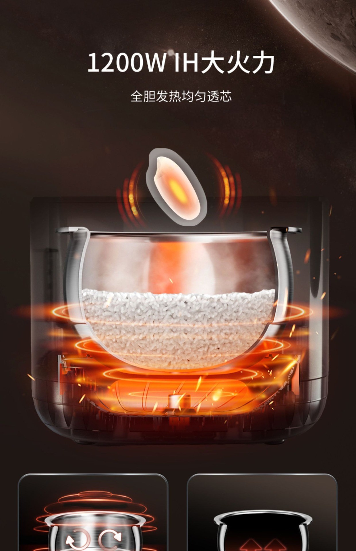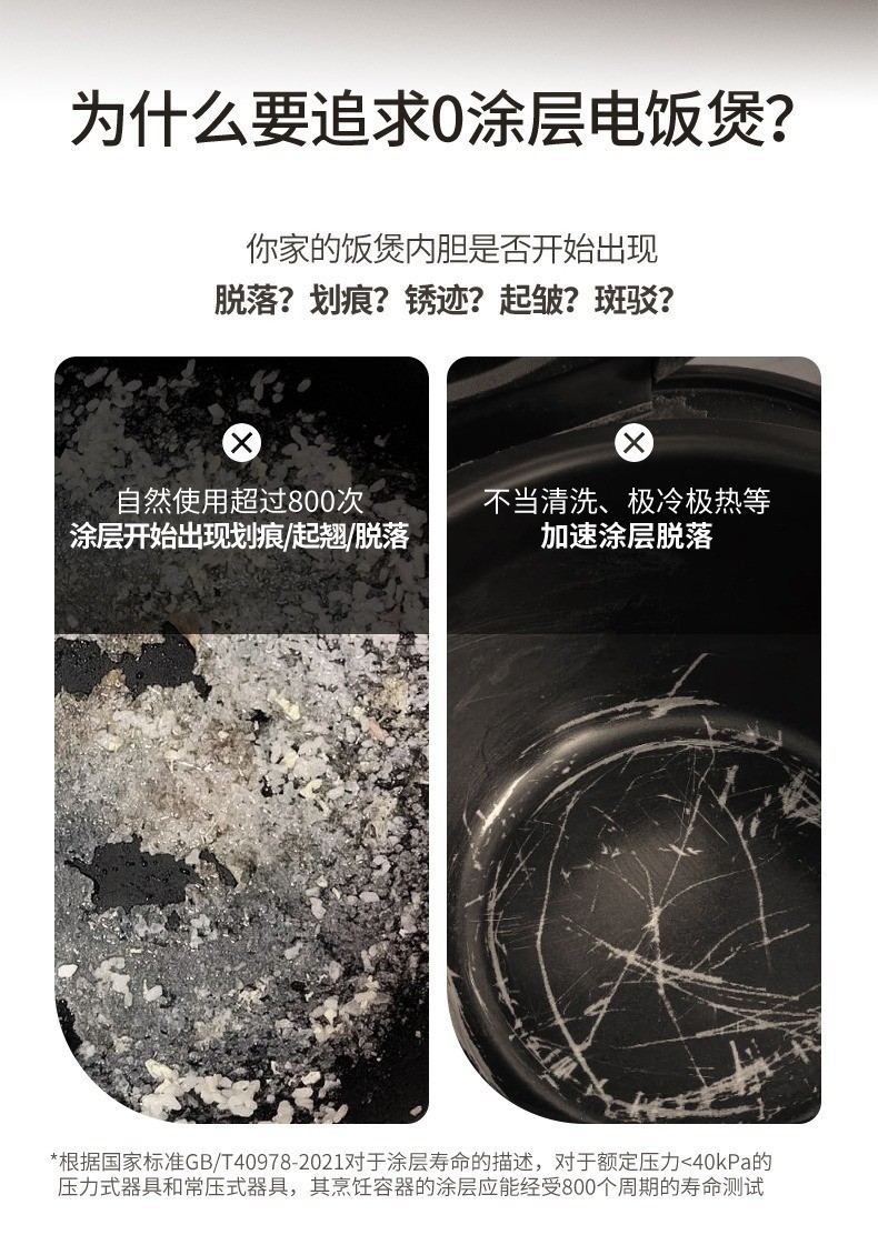食品级不锈钢球胆,0涂层更安全;IH电磁变频加热;风冷水润膜技术,远离化学涂层,不怕脱落;