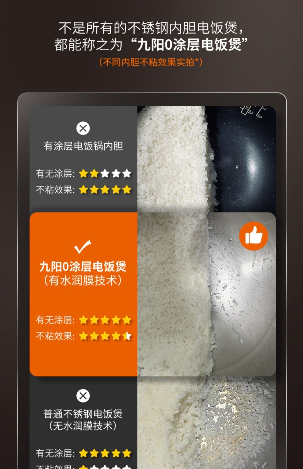 九阳电饭煲 多功能4L不锈钢球形内胆电饭锅0涂层柴火饭电饭煲