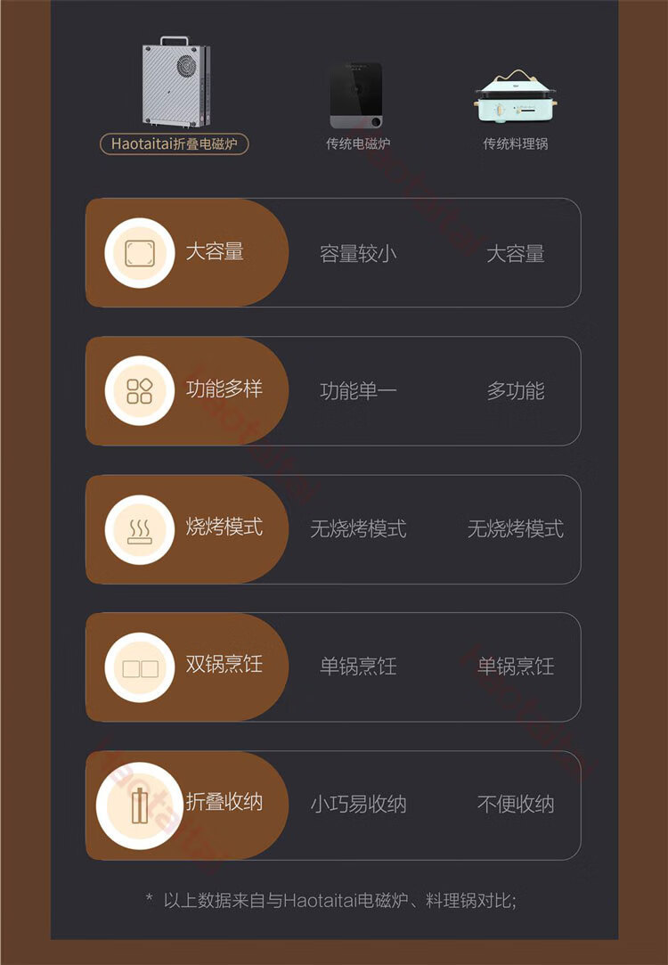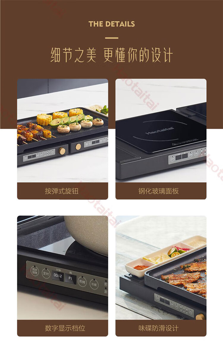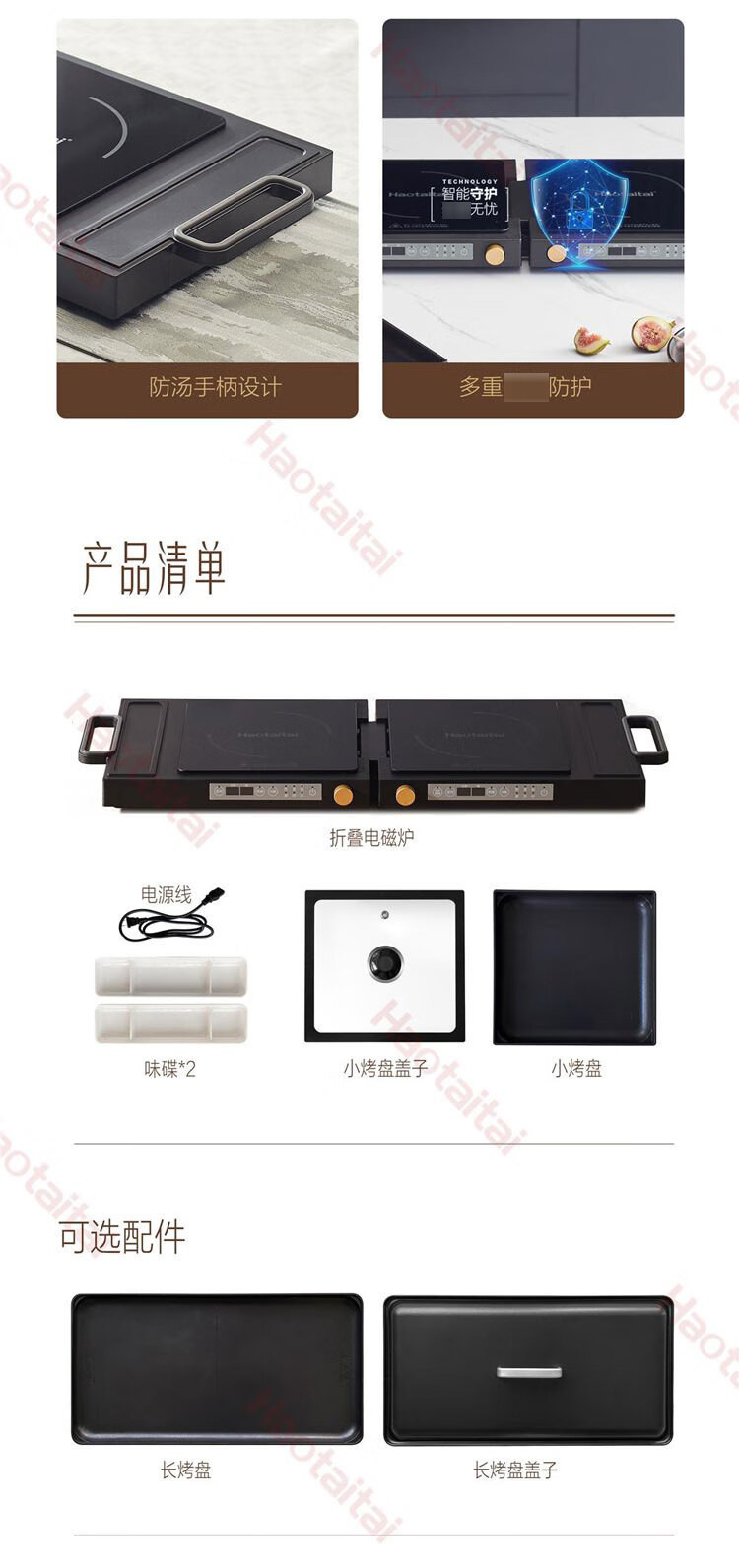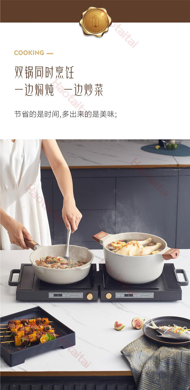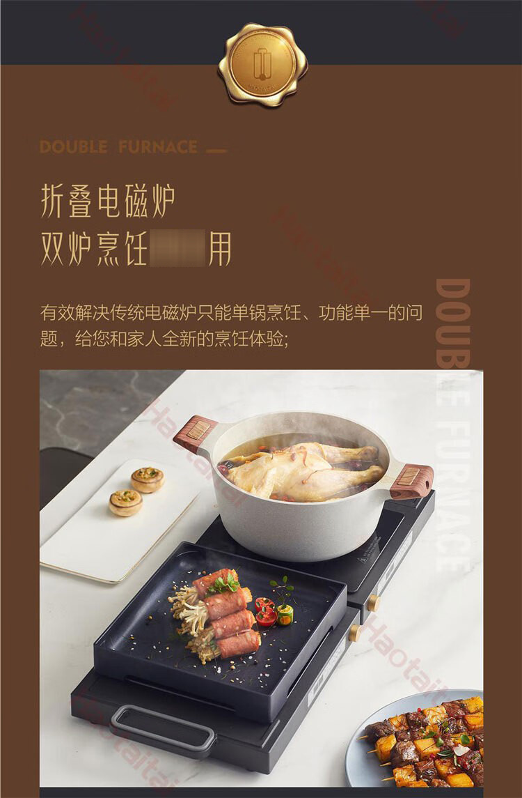 Haotaitai多功能双头折叠电磁炉 独立控温同步调温便携收纳电磁炉電磁爐
