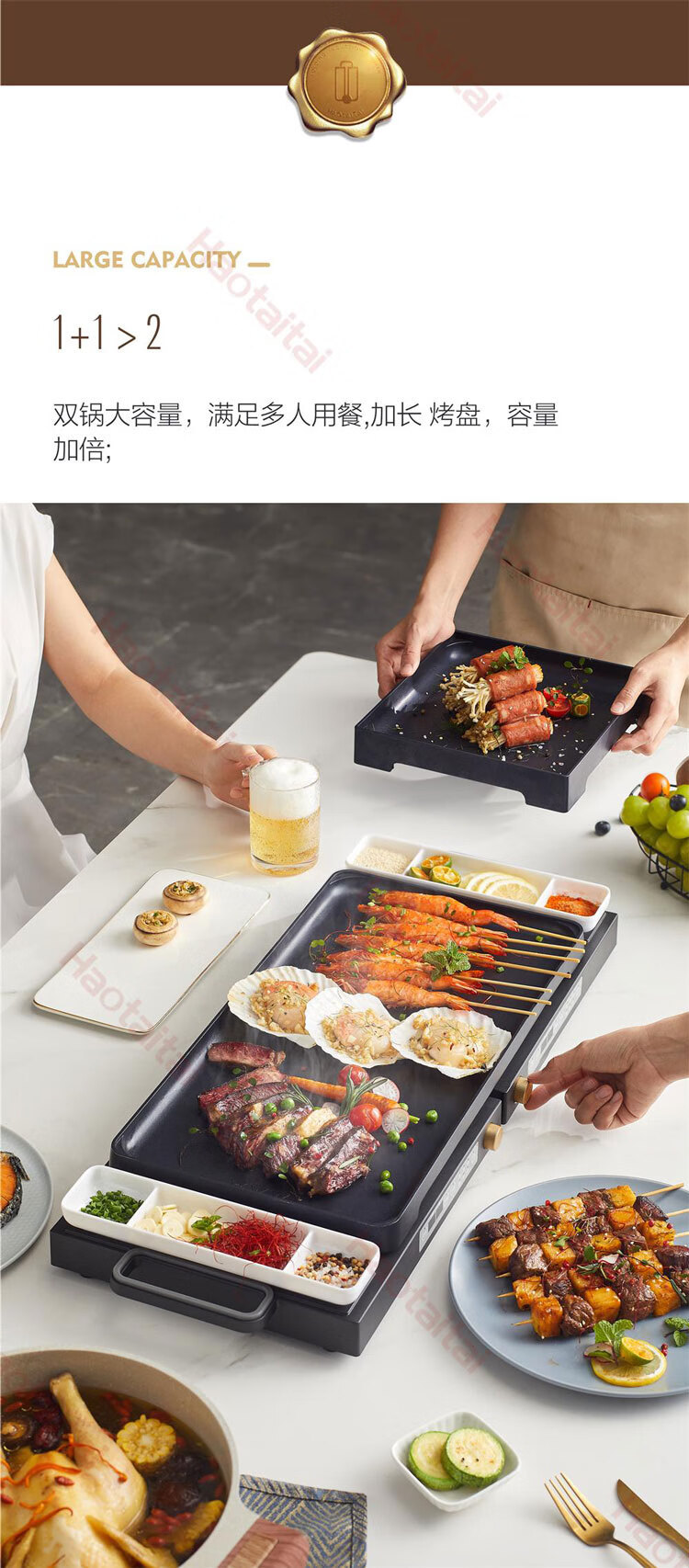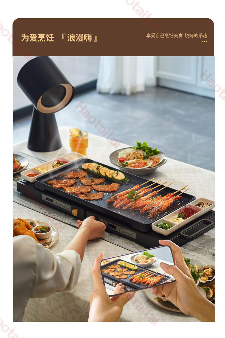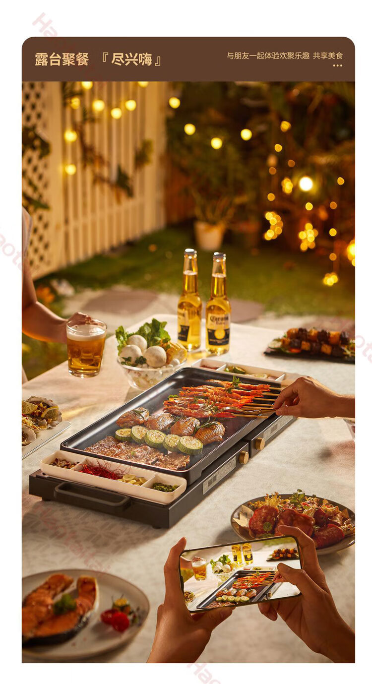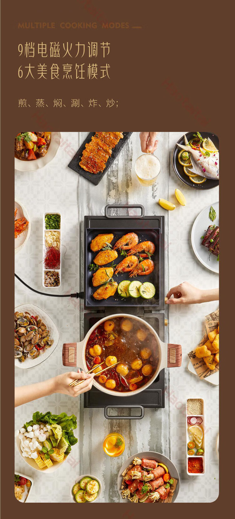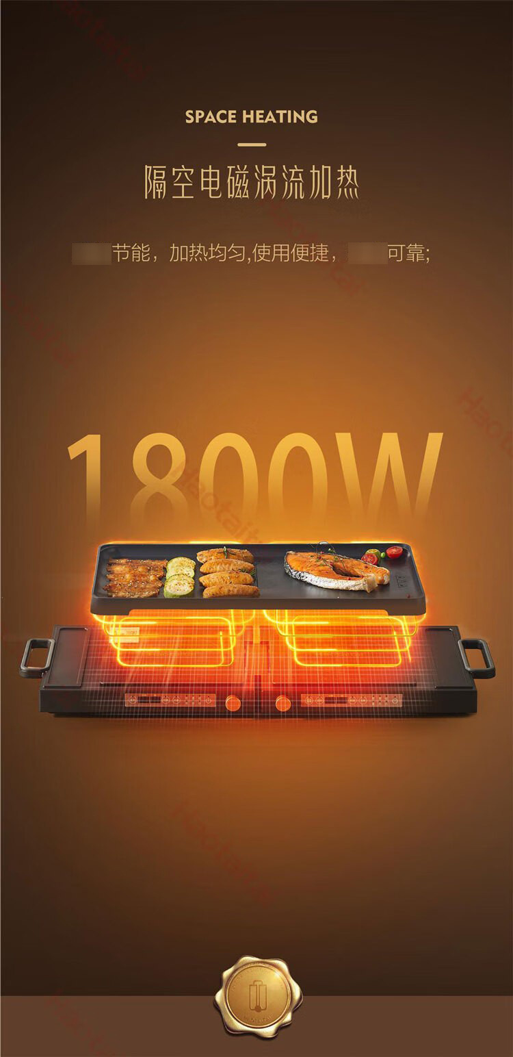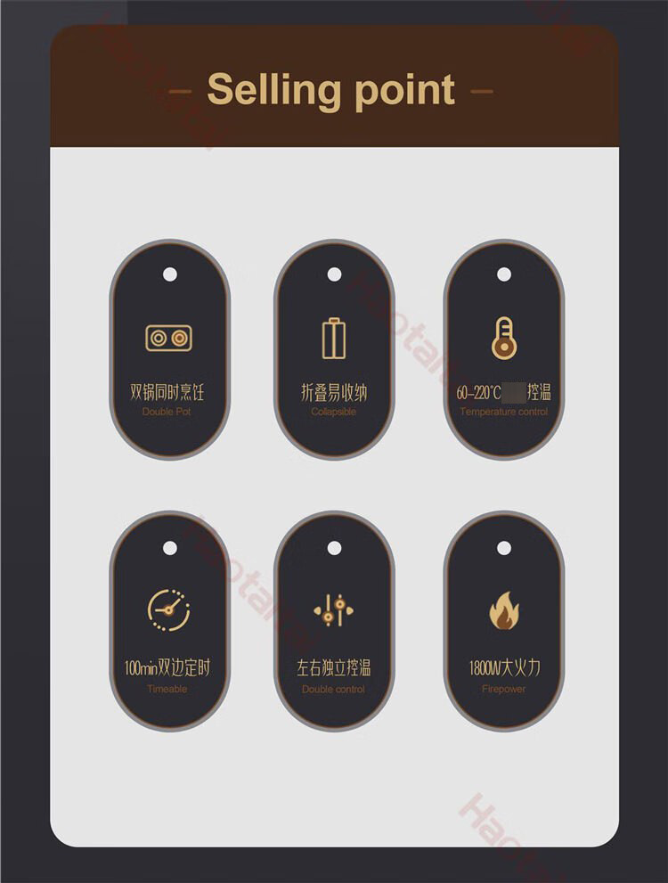 双锅同时烹饪,折叠易收纳,60℃-220℃控温,100min双边定时,1800W大火力;