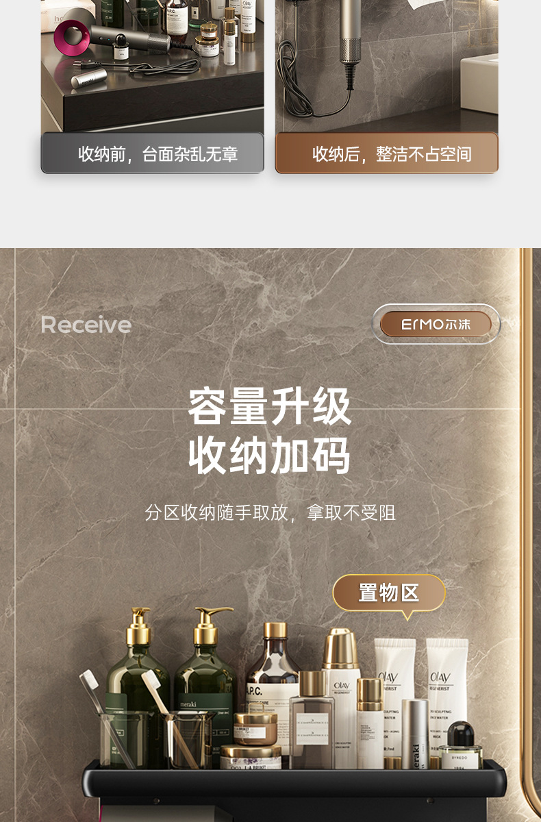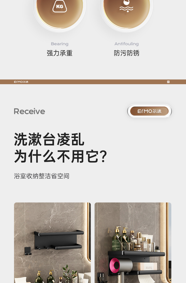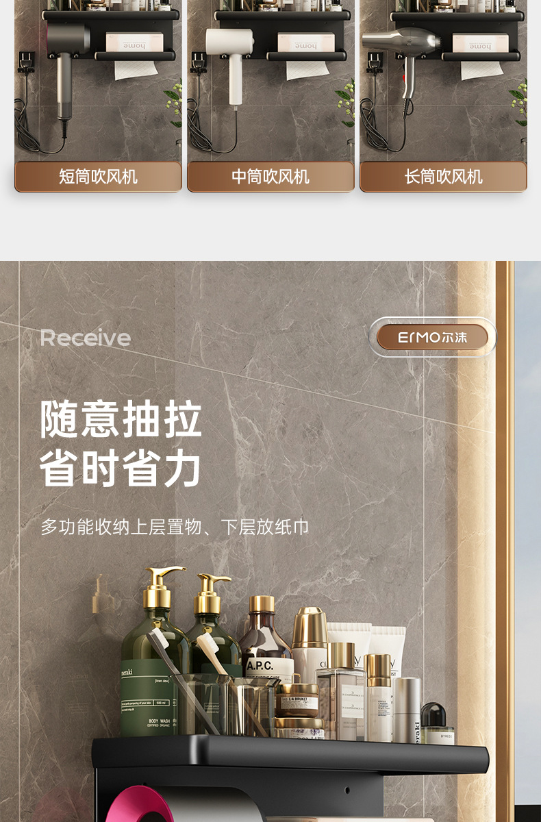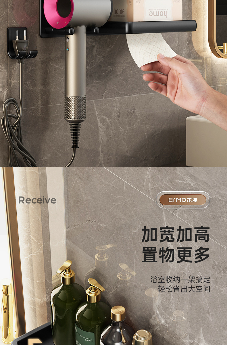 尔沫吹风机置物架 浴室厕所洗手间洗漱台壁挂收纳