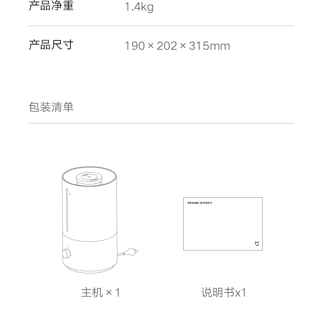 小米米家加湿器2 家用大容量加湿机卧室静音大雾量净化空气雾化机