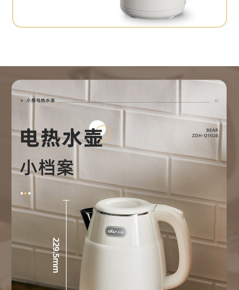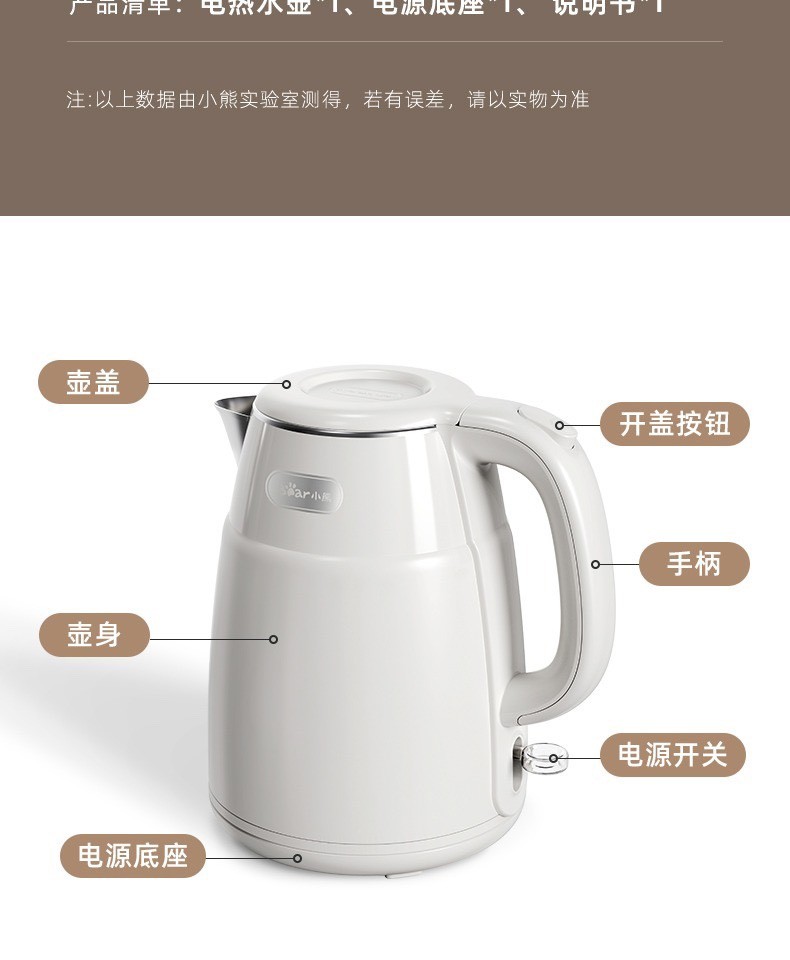小熊复古热水壶 家用宿舍烧水壶电热自动电水壶不锈钢水壶1.5L