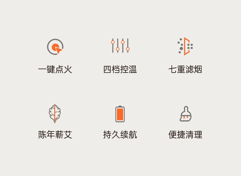智能自动一键点火;持久续航;清理便捷;四档控温;持久续航;七重过滤烟,基本无烟;安全智能不烫手;